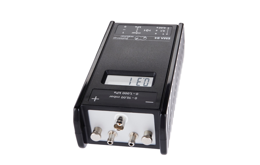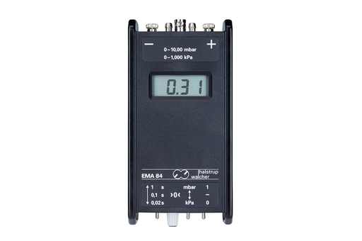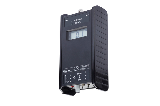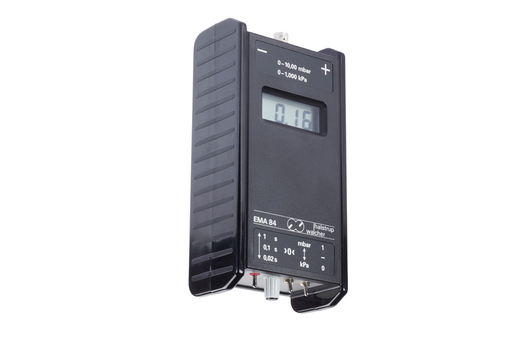 The EMA 84 is a portable, battery-powered digital pressure gauge providing highly accurate measurements of positive and negative differential pressures. Because it is durable and easy-to-use, the EMA 84 lends itself well to maintenance work and customer service applications for heating, air-conditioning and ventilation units, where it can be used for monitoring filters, measuring fireplace drafts, etc. Its precision and reproducibility also make the EMA 84 is highly suitable for use in laboratory applications.