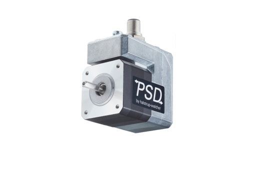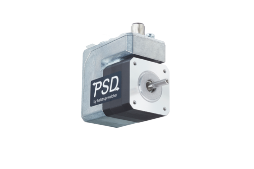 Direct drive PSD 48 is a mechatronic drive with integrated control, bus interface and absolute measurement system without battery. This drive is ideal for automatic format changeover. The stepper motor with integrated control and bus communication permits higher velocities at lower torques.